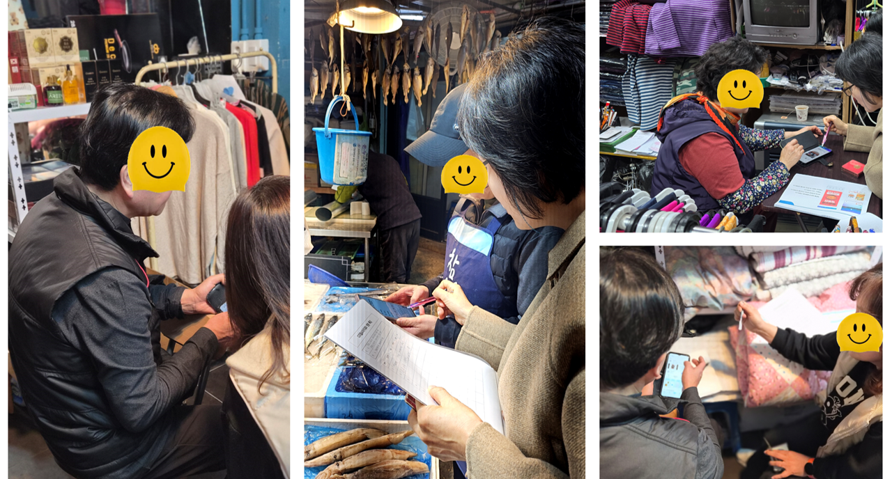 또한, 교육 참여가 어려운 상인들에게 각 점포에 방문해서 AI관련 교육에 도움을 드렸습니다.