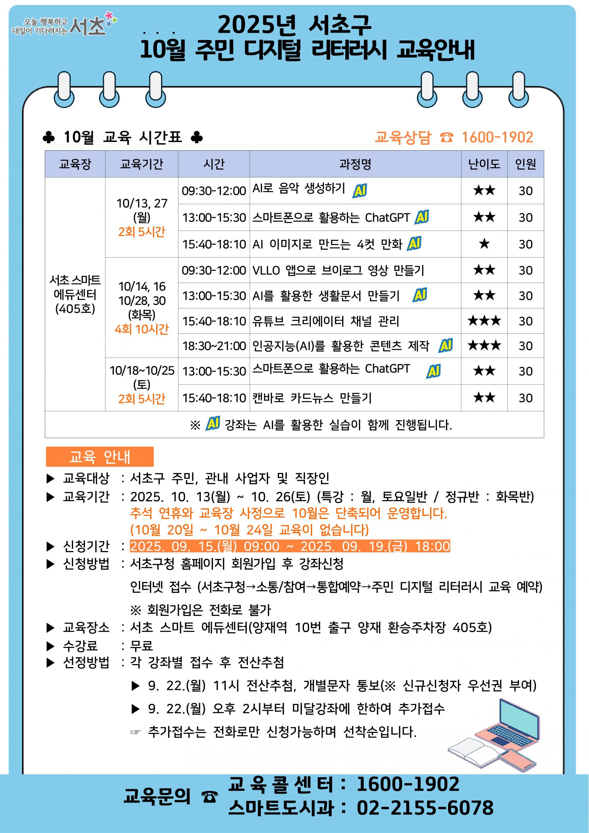 2025년 10월 서초구 주민 리터러시 교육 안내