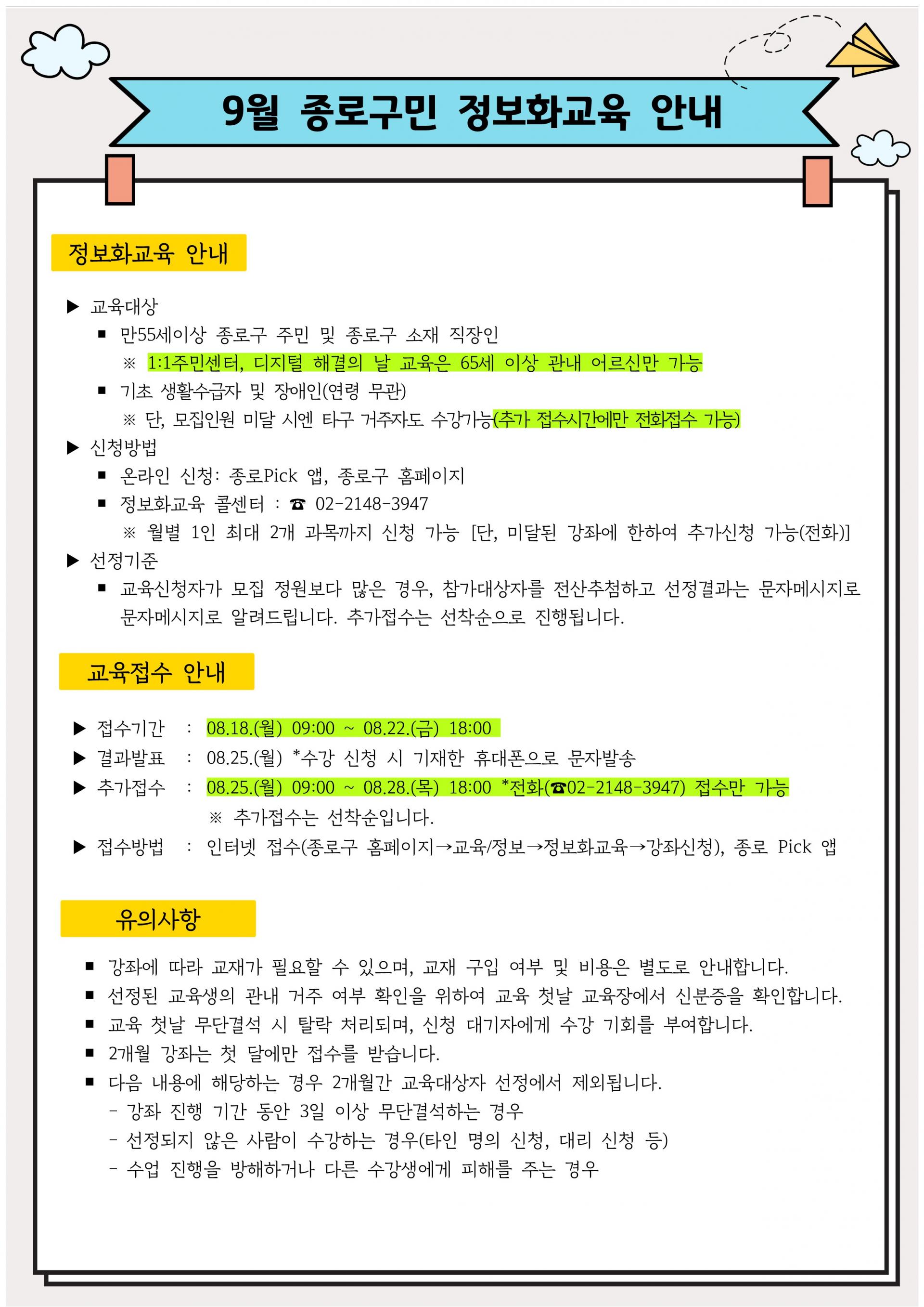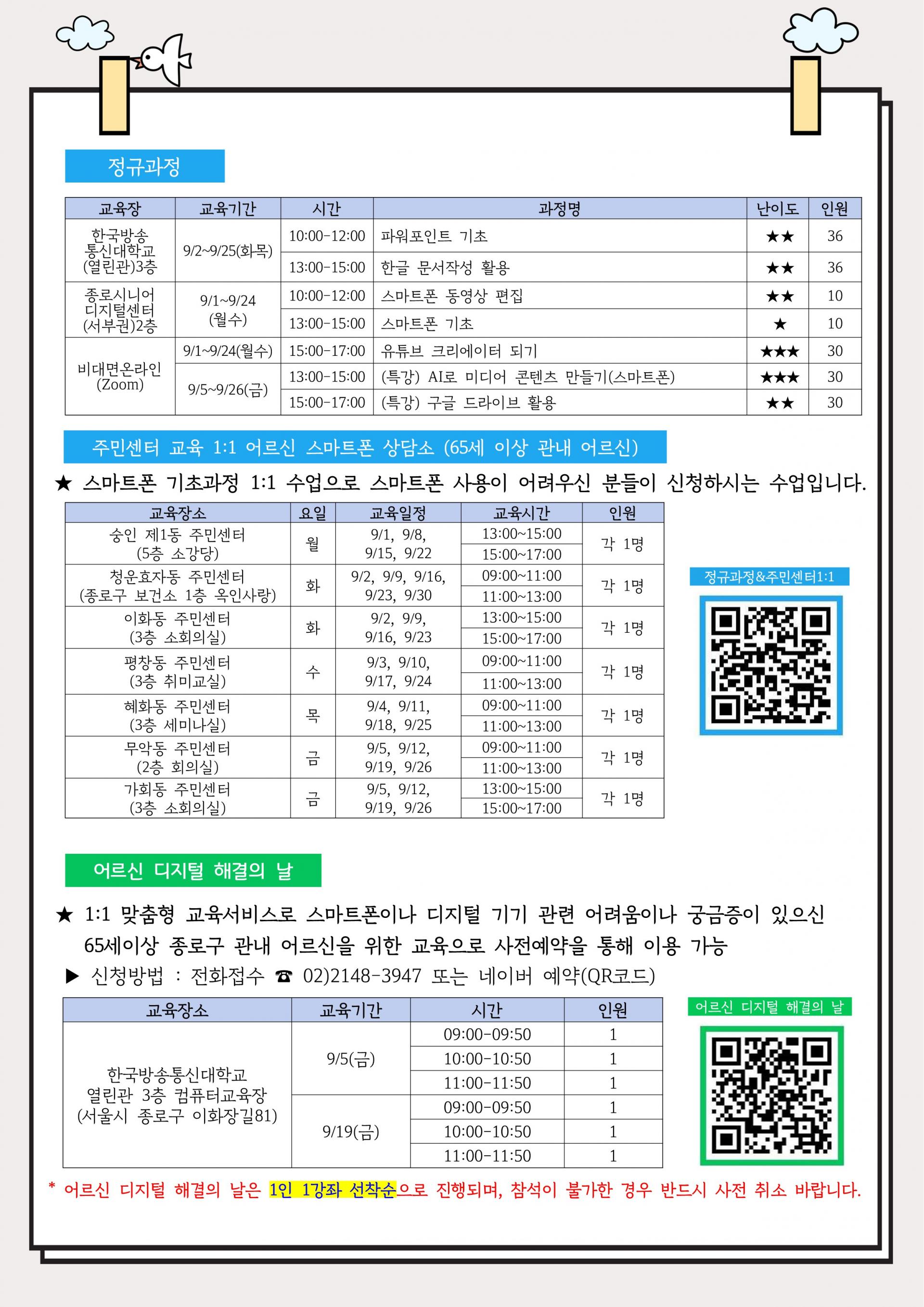 2025년 9월 종로구 정보화교육 일정